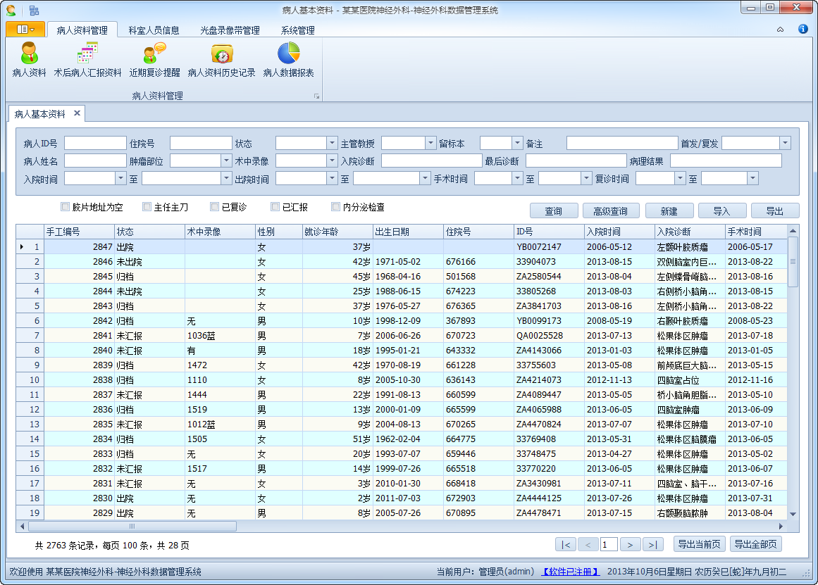 我們開發了一系列的病人資料管理系統,包括《神經外科病人資料管理系統》、《脊柱外科病人資料管理系統》、《腫瘤外科病人資料管理系統》等軟件,豐富的開發經驗和行業經驗能為您開啟病人資料數字化管理的金鑰匙,提高日常的管理效率。